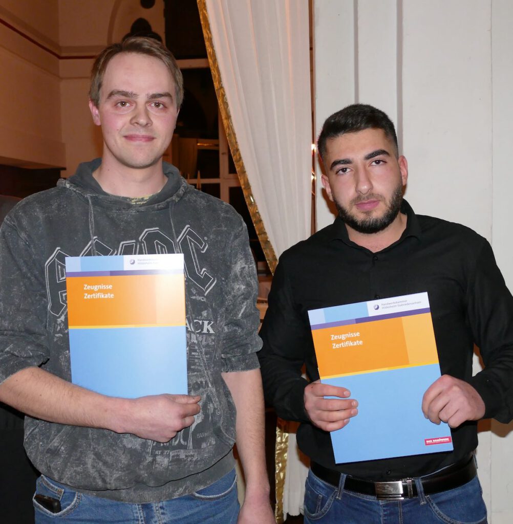 Wolfgang Holze schloss seine Ansprache dann mit den Worten „Ich spreche Sie Kraft meines Amtes von der Lehre frei!“, bevor die Gesellenbriefe und Prüfungszeugnisse überreicht wurden.